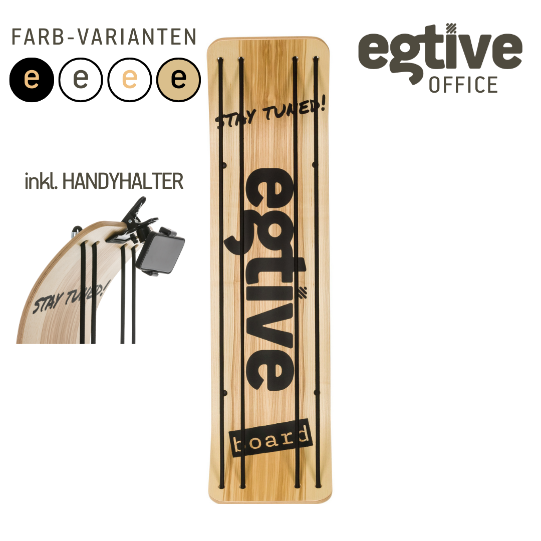 LIEFERUMFANG: egtive-BOARD, egtive-HANDYHALTER, Übungsplakat, Montagematerial