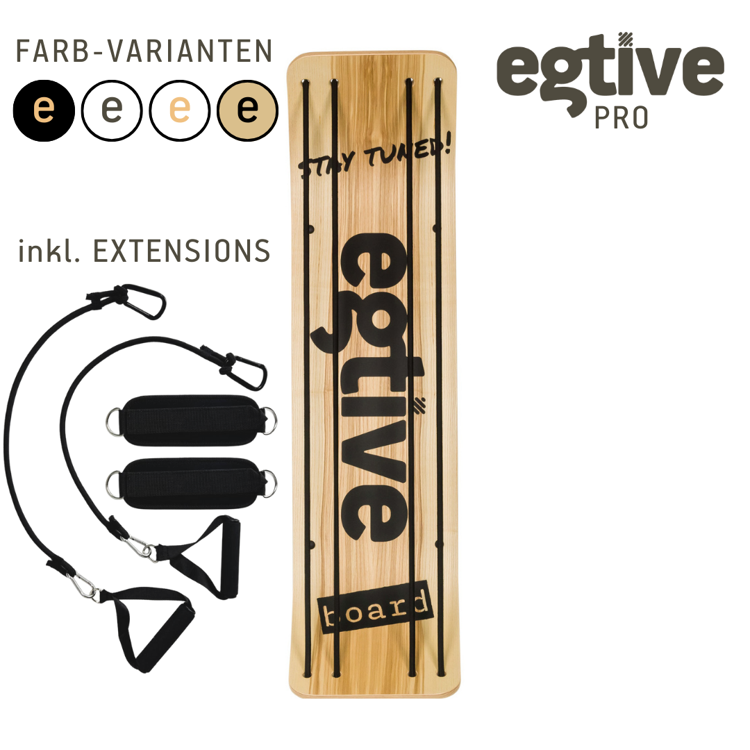 LIEFERUMFANG: egtive-BOARD, egtive-EXTENSIONS mit 2 Stk Fußmanschette und 2 Stk Handgriffen, Übungsplakat, Montagematerial